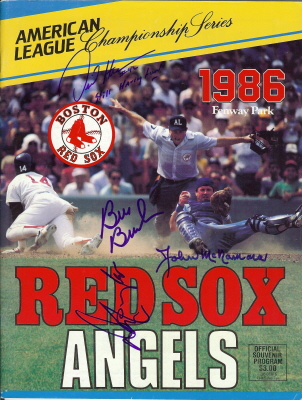 1986 ALCS Boston Red Sox vs California Angels Program autographed by Don Baylor Bill Buckner John McNamara & Dave Henderson.