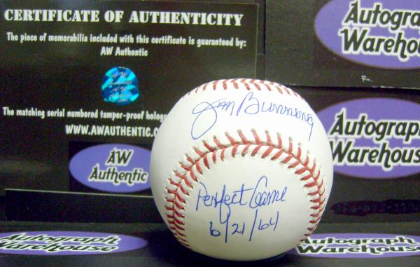 Jim Bunning autographed Major League Baseball inscribed Perfect Game 6 21 1964