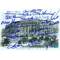 Features- New York Yankees Stadium Autographed Photo Signed by 20 Players Whitey Ford Don Larsen Hank Bauer Enos Slaughter Size 7 x 10 in.