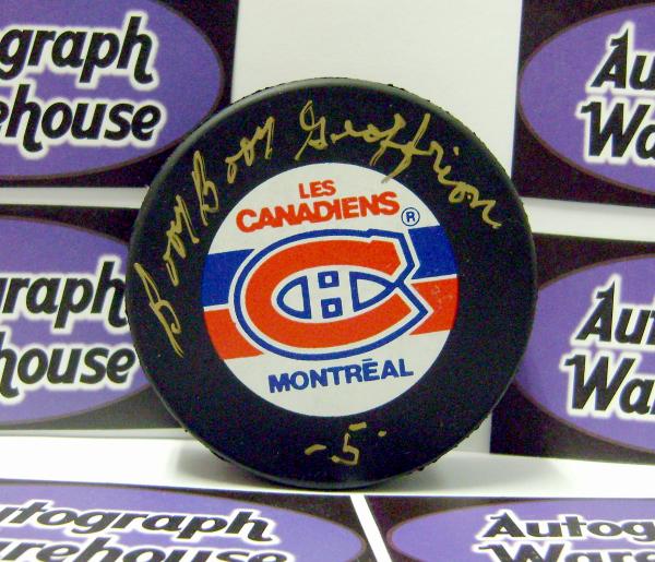 Bernie Boom Boom Geoffrion Autographed⁄Hand Signed Hockey Puck (Montreal Canadiens) has a Certificate of Authenticity of Authenticity from AW Authentic.