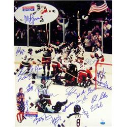 Autograph Warehouse 249253 1980 USA Olympic Hockey Team Autographed 16 x 20 in. Photo Herb Brooks 21 Signatures Mike Eruzione Jim Craig Bob Suter Miracle on Ice JSA Authentication