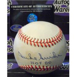 Autograph Warehouse 249318 Duke Snider Autographed Baseball Inscribed HOF 80 - National League Yellowed Spotted Condition SC