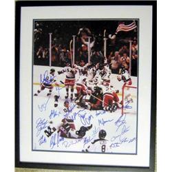 Autograph Warehouse 249535 1980 United States Olympic Hockey Team Photo Signed by the Twenty Players Eruzione Jim Craig Bob Suter - No. V4 Framed and Matted Miracle On Ice 20 x 24 in.