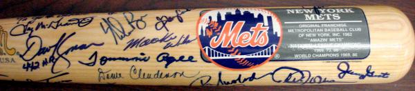 New York Mets Legends Bat autographed by 21 including Nolan Ryan Tug Mcgraw inscribed Ya gotta Believe Keith Hernandez 86 WS Champs Gary Carter Tommie Agee Mookie Wilson Jeff Kent Ron Swoboda Jerry Grote Gary Gentry Duke Snider Warren Spahn Dave Kingman 442 HRs John Stearns Jon Matlack Cleon Jones George Foster Wayne Garrett Bud Harrelson Donn Clendenon & Mike Torrez. Certificate of Authenticity along with matching tamper-proof holograms from Autograph Warehouse guaranteeing the authenticity of this hand-signed autograph. Each and every autograph is guaranteed for life to be authentic.