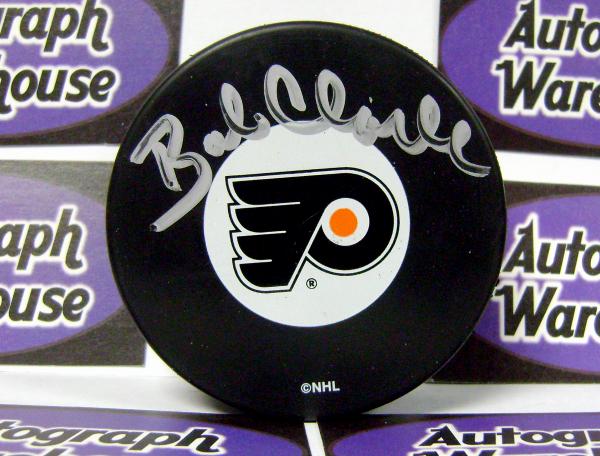 Bobby Clarke autographed Hockey Puck (Philadelphia Flyers) has a Certificate of Authenticity along with matching tamper-proof holograms from Autograph Warehouse guaranteeing the Authenticity of this hand-autographed autograph.