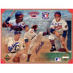 Features- Bob Feller Lou Boudreau Mel Harder Andre Thornton Autographed Upper Deck Tribute to Cleveland Stadium Sheet - Cleveland Indians