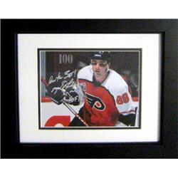 Features- Eric Lindros Autographed 8 x 10 in. Photo - Philadelphia Flyers Inscribed HOF 16 Image - No. SC4 Matted & Framed