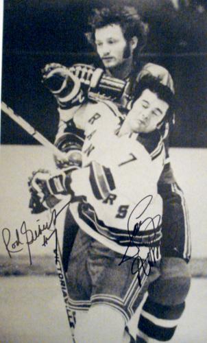 Rod Gilbert & Larry Robinson autographed 11x14 B&W Photo (New York Rangers versus Montreal Canadiens) This item comes with a Certificate of Authenticity along with matching tamper-proof holograms from Autograph Warehouse guaranteeing the authenticity of this hand-signed autograph.