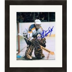 Features- Don Edwards Autographed 8 x 10 in. Photo - Buffalo Sabres Goaltender 1970s Image - No. 1 Matted & Framed