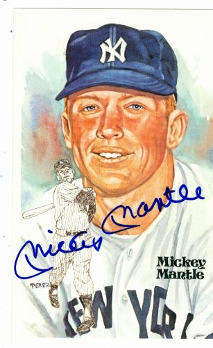 Mickey Mantle autographed Perez Steele Postcard (New York Yankees) is certified with a tamper-evident serialized hologram and certificate of authenticity.