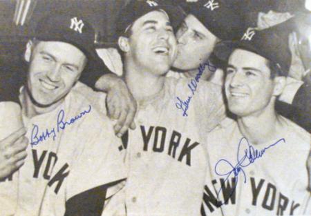 Gene Woodling Bobby Brown Jerry Coleman autographed 11x14 Photo (New York Yankees Lockeroom Celebration) is certified with a tamper-evident serialized hologram and certificate of authenticity.