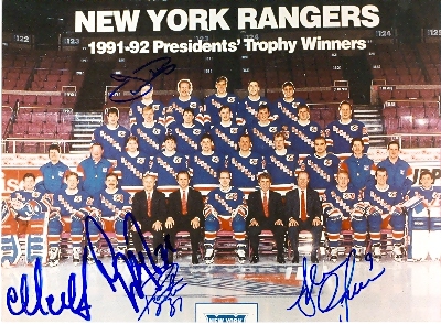 Sergei Nemchinov Jay Wells Doug Weight Adam Graves & Paul Broten autographed photo 8x11 (New York Rangers 1992).