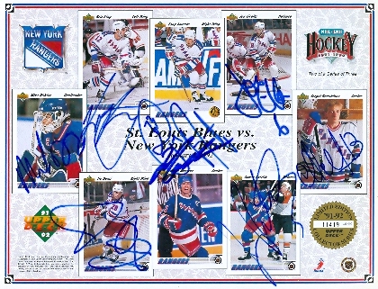 Mike Richter Mark Messier Amonte Nemchinov King Domi Patrick< Cirella autographed collectors sheet 8x11 (New York Rangers 1992).