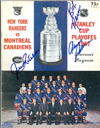 New York Rangers 1967 Playoff Program autographed By Arnie Brown Bob Nevin & Jean Ratelle. Item certified with a tamper-evident serialized hologram and certificate of authenticity.