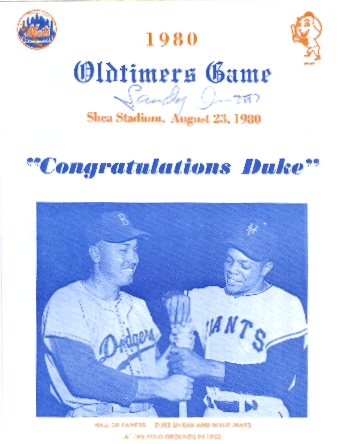 Sandy Amoros autographed 1980 Old Timers program at Shea Stadium (Brooklyn Dodgers). Certified with a tamper-evident serialized hologram and certificate of authenticity.