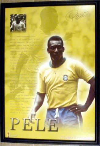 Pele Autographed poster matted and framed 26x36 (Brazil World Cup).