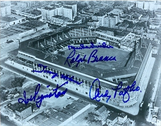 Ebbets Field 8x10 photo autographed by Duke Snider Joe Pignitano Andy Pafko Tommy Holmes & Ralph Branca (Brooklyn Dodgers).Item pictured above comes with autographwarehouse certificate of authenticity and numbered hologram. Item comes fully certified with a tamper-evident serialized hologram and certificate of authenticity.