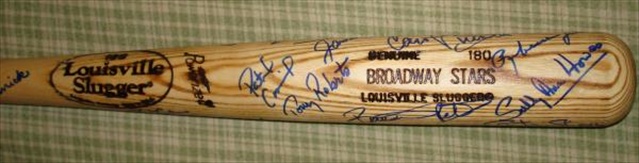 Broadway Stars autographed Baseball Bat by 18 actors Henry Winkler Robert Urich Ladd Duncan Dench Noth Natasha Richardson etc. Item certified with a tamper-evident serialized hologram and certificate of authenticity.