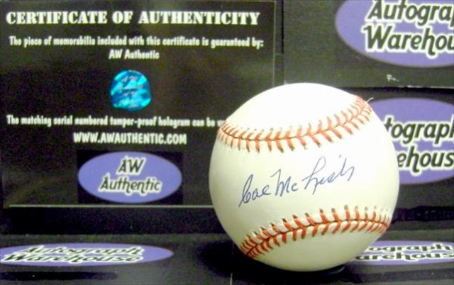 Cal McLish autographed Major League Baseball comes with a Certificate of Authenticity along with matching tamper-proof holograms from Autograph Warehouse guaranteeing the authenticity of this hand-signed autograph.