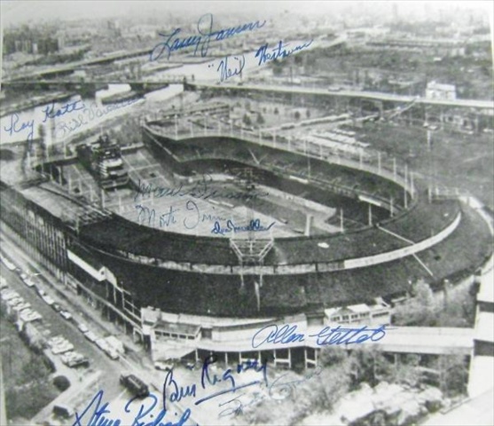 Polo Grounds 11x14photo autographed by New York Giants Rigney Irvin Katt Jansen Westrum Mueller Grissom Voiselle Gettle Jorgensen & Ridzek. Item comes fully certified with a tamper-evident serialized hologram and certificate of authenticity.