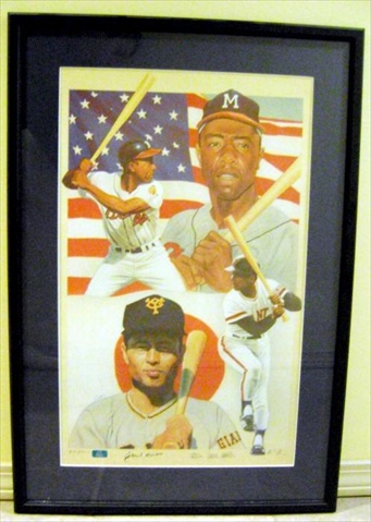 Hank Aaron & Sadaharu Oh autographed Lithograph (Milwaukee/Atlanta Braves & Yomiuri Giants Baseball Home Run Kings in America & Japan) 17x29 framed. Item certified with a tamper-evident serialized hologram and certificate of authenticity.