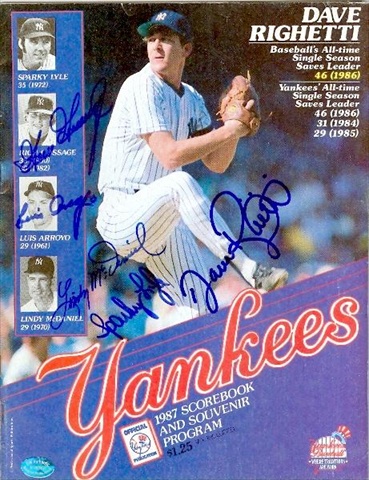 New York Yankees 1987 Program autographed by Dave Righetti Sparky Lyle Lindy McDaniel & Luis Arroyo. Item certified with a tamper-evident serialized hologram and certificate of authenticity.