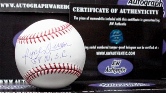 Ryne Duren autographed Major League Baseball inscribed 58 WSC comes with a Certificate of Authenticity along with matching tamper-proof holograms from Autograph Warehouse guaranteeing the authenticity of this hand-signed autograph. Each and every autograph is guaranteed for life to be authentic.