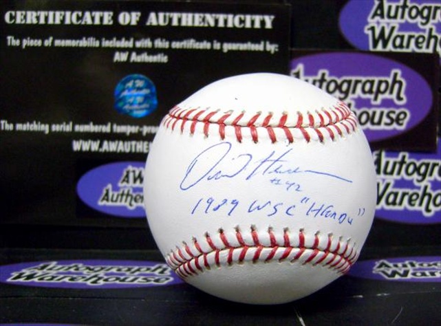 Dave Henderson autographed Major League Baseball inscribed 1989 WS Champs comes with a Certificate of Authenticity along with matching tamper-proof holograms from Autograph Warehouse guaranteeing the authenticity of this hand-signed autograph. Each and every autograph is guaranteed for life to be authentic.