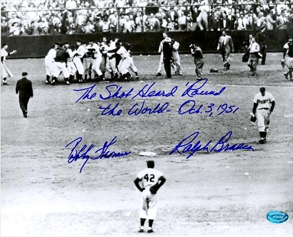 Ralph Branca & Bobby Thomson autographed 16x20 Photo (The Shot Heard Round The World) inscribed.Item comes fully certified with a tamper-evidentserialized hologram and certificate of authenticity.