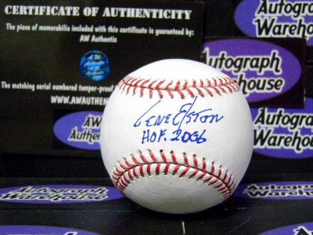 Gene Elston autographed Baseball Inscribed HOF 2006. Item certified with a tamper-evident serialized hologram and certificate of authenticity.