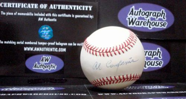 Al Campanis signed official National League Baseball (Brooklyn Dodgers). Item comes fully certified with a tamper-evident serialized hologram and certificate of authenticity. Comes fully certified with Certificate of Authenticity and tamper-evident hologram.