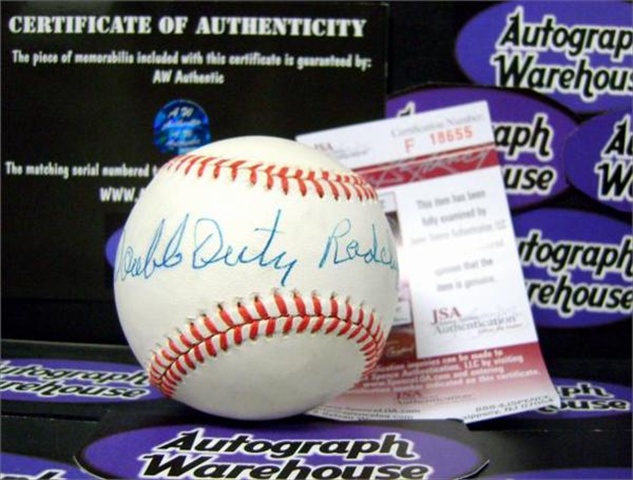 Ted "Double Duty" Radcliffe Autographed Baseball (JSA). This item comes with a Certificate of Authenticity along with matching tamper-proof holograms from Autograph Warehouse guaranteeing the authenticity of this hand-signed autograph.