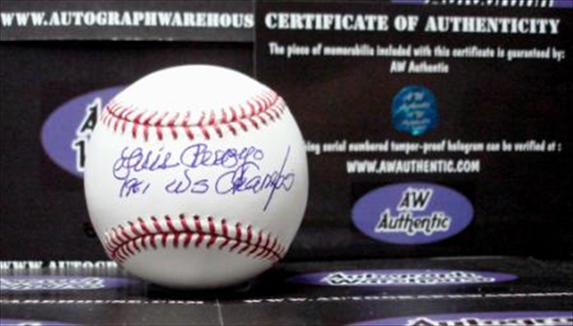 Luis Arroyo autographed Major League Baseball inscribed 1961 WS Champs comes with a Certificate of Authenticity along with matching tamper-proof holograms from Autograph Warehouse guaranteeing the authenticity of this hand-signed autograph.