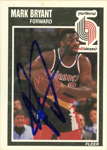 Mark Bryant autographed Basketball Card (Portland Trail Blazers) 1989 Fleer #127.Item comes fully certified with a tamper-evident serialized hologram and certificate of authenticity. Comes fully certified with Certificate of Authenticity and tamper-evident hologram.