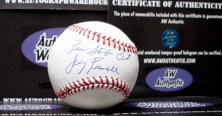 Jimmy Piersall signed Official Major League Baseball inscribed Fear Strikes Out. Item comes fully certified with a tamper-evident serialized hologram and certificate of authenticity.
