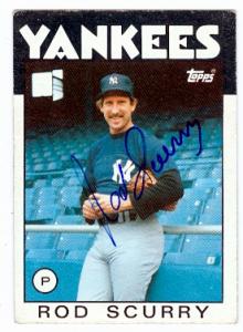 Rod Scurry autographed baseball card (New York Yankees) 1986 Topps 449. Item comes fully certified with a tamper-evident serialized hologram and certificate of authenticity.