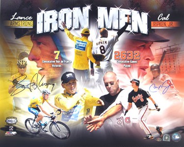 Cal Ripken Jr. (Baltimore Orioles) and Lance Armstrong Limited Edition Dual Signed 16x20 Autographed Collage Iron Men Photo (MLB Hologram) . Signed items come fully certified with Certificate of Authenticity and tamper-evident hologram.