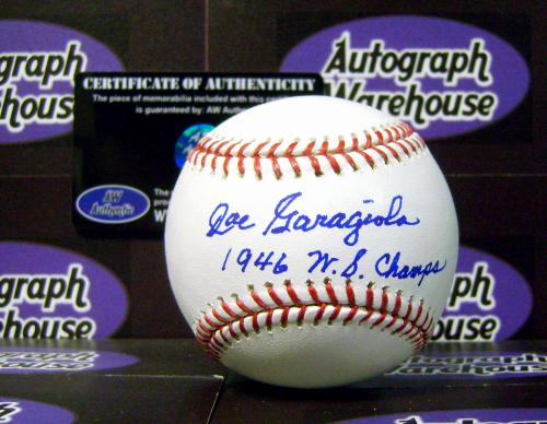 Joe Garagiola autographed Major League Baseball inscribed 1946 WS Champs. Signed items come fully certified with Certificate of Authenticity and tamper-evident hologram.