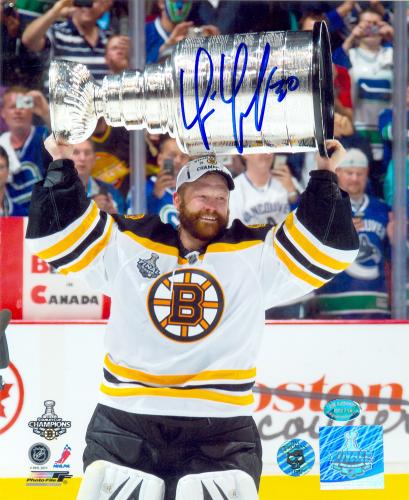 Tim Thomas autographed 8x10 Photo ( Boston Bruins 2011 Stanley Cup Champion - Playoff MVP ) Holding the Stanley Cup. Signed items come fully certified with Certificate of Authenticity and tamper-evident hologram.