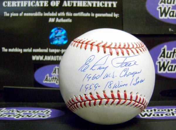 Roy Face autographed Baseball inscribed 1960 WS Champs 18-1 1959 (Pittsburgh Pirates). Item comes fully certified with a tamper-evident serialized hologram and certificate of authenticity.
