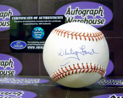 Whitey Ford autographed Major League Baseball comes with a Certificate of Authenticity along with matching tamper-proof holograms from Autograph Warehouse guaranteeing the authenticity of this hand-signed autograph.