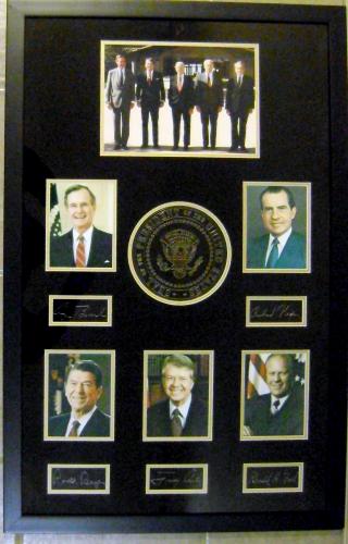 5 Presidents of the United States framed and matted laser signatures Ronald Regan Ford Nixon Carter Bush 23x34.Certified Authentic.