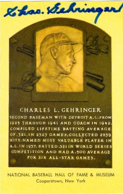 Charlie Gehringer autographed Hall of Fame Plaque Postcard (Detroit Tigers) 3. 5 x 5. 5 (67) comes with a Certificate of Authenticity along with matching tamper-proof holograms.