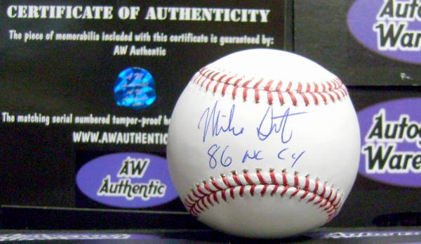 Mike Scott autographed Major League Baseball inscribed 86 NL CY. This item comes with a Certificate of Authenticity along with matching tamper-proof holograms.