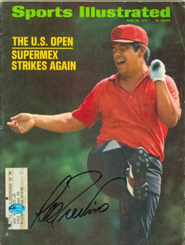 Lee Trevino autographed Sports Illustrated Magazine (Golf Hall of Famer) comes with a Certificate of Authenticity along with matching tamper-proof holograms from Autograph Warehouse guaranteeing the authenticity of this hand-signed autograph.