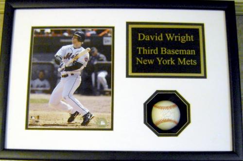 David Wright autographed baseball shadowbox (New York Mets). Qualified with a tamper-evident serialized hologram and certificate of authenticity.