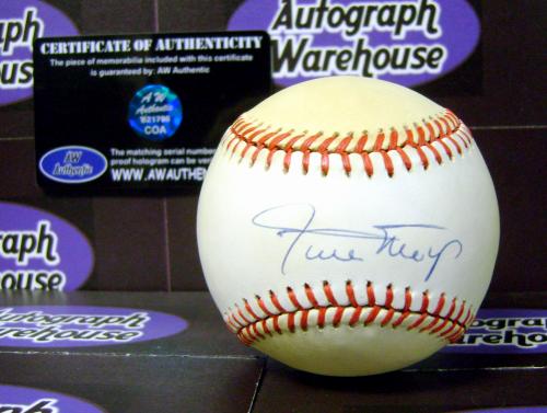 Willie Mays autographed National League Baseball (Yellowed Toned). Signed items come fully certified with Certificate of Authenticity and tamper-evident hologram.