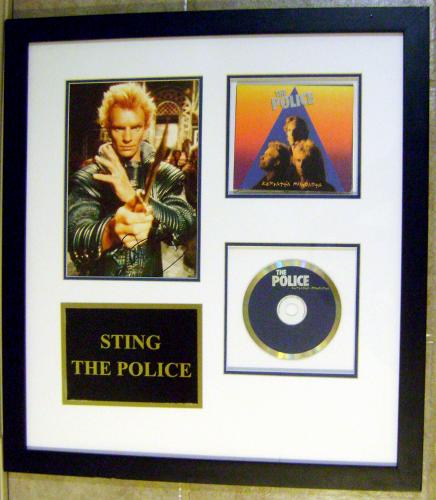 Sting autographed photo (The Police CD framed and matted). Qualified with a tamper-evident serialized hologram and certificate of authenticity.