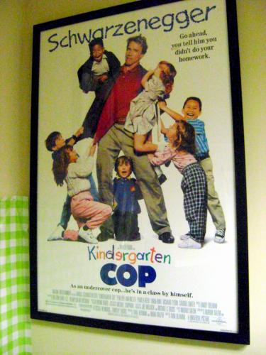 Kindergarten Cop Movie Poster framed & matted (Unsigned roughly 30 x 42 in size). Qualified with a tamper-evident serialized hologram and certificate of authenticity.