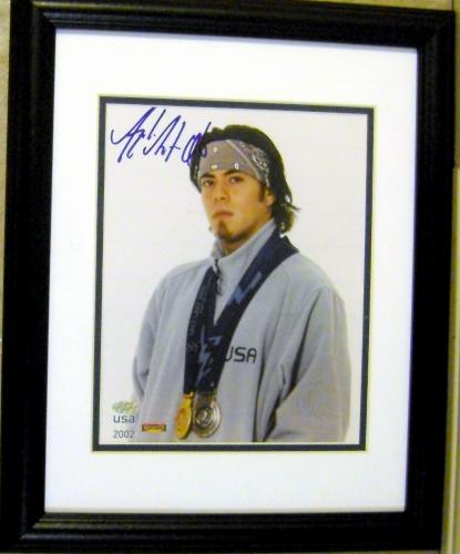 Apolo Anton Ohno autographed 8 x 10 Photo (Speed Skating) matted & framed. Qualified with a tamper-evident serialized hologram and certificate of authenticity.